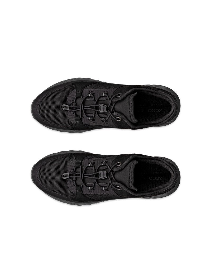 Der wasserdichte niedrig geschnittene ECCO EXOSTRIDE Damenschuh dämpft jeden Schritt. Dieser leichte Sneaker ist aus atmungsaktivem Textil mit wasserdichtem GORE-TEX-Futter gefertigt und mit einer griffigen Gummilaufsohle perfektioniert.